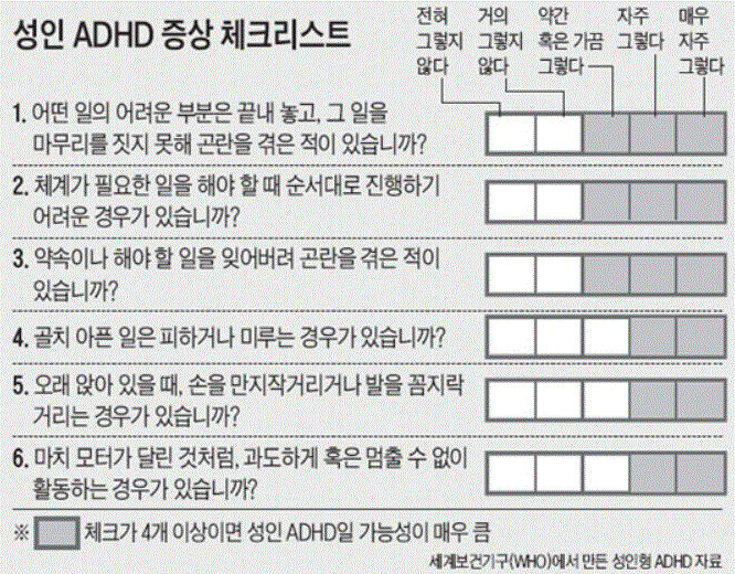 성인 ADHD 증상 자가진단 테스트