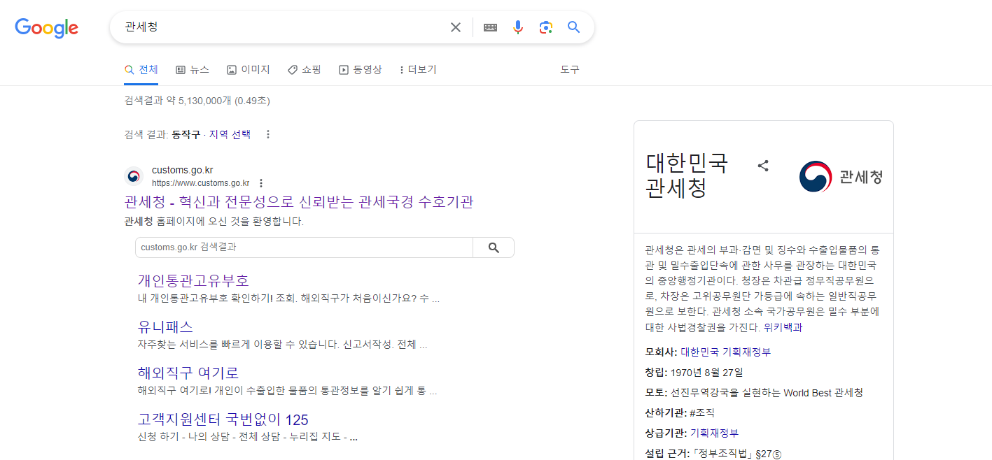 1. 인터넷에 관세청/유니패스를 검색하여 접속합니다.