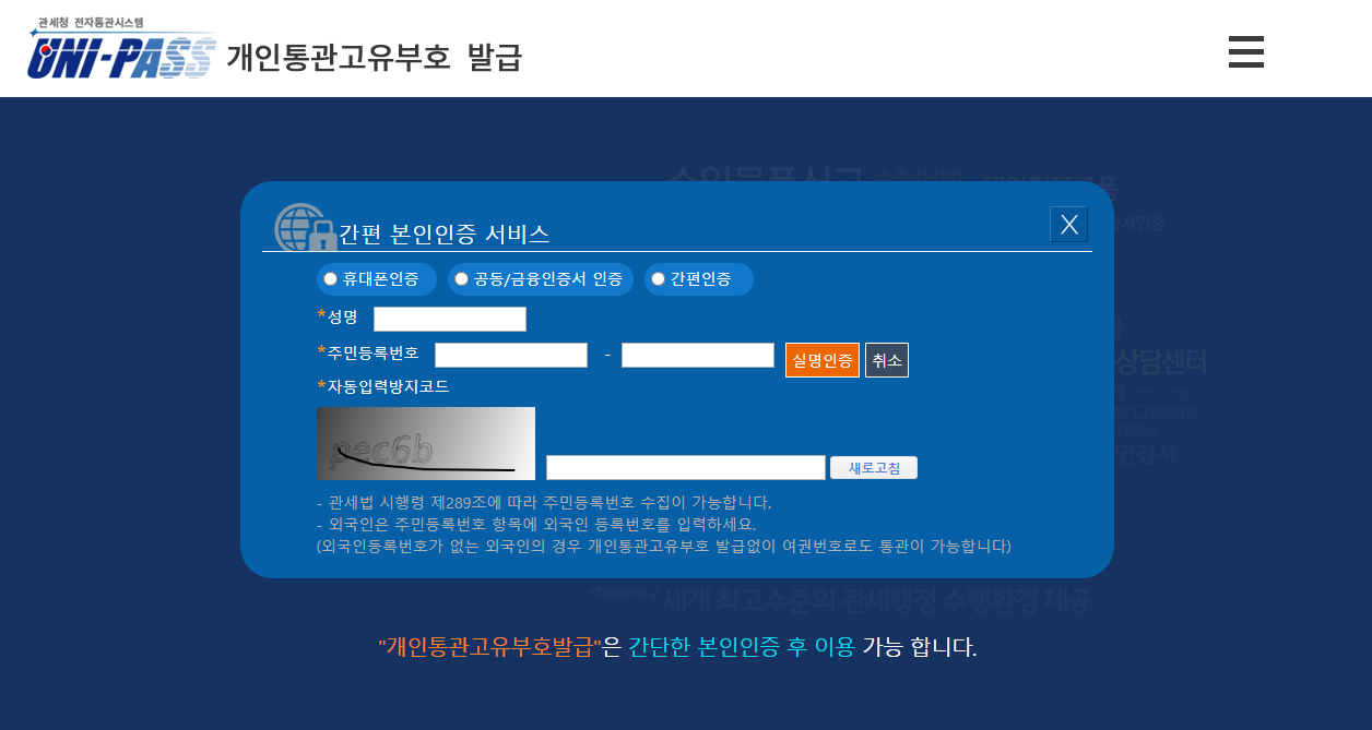 개인통관고유번호 만들때 주의점