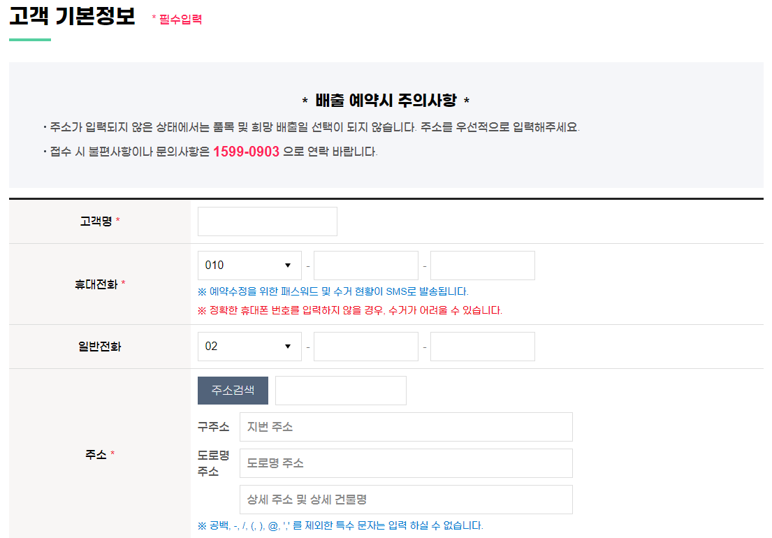 접수시 주의사항